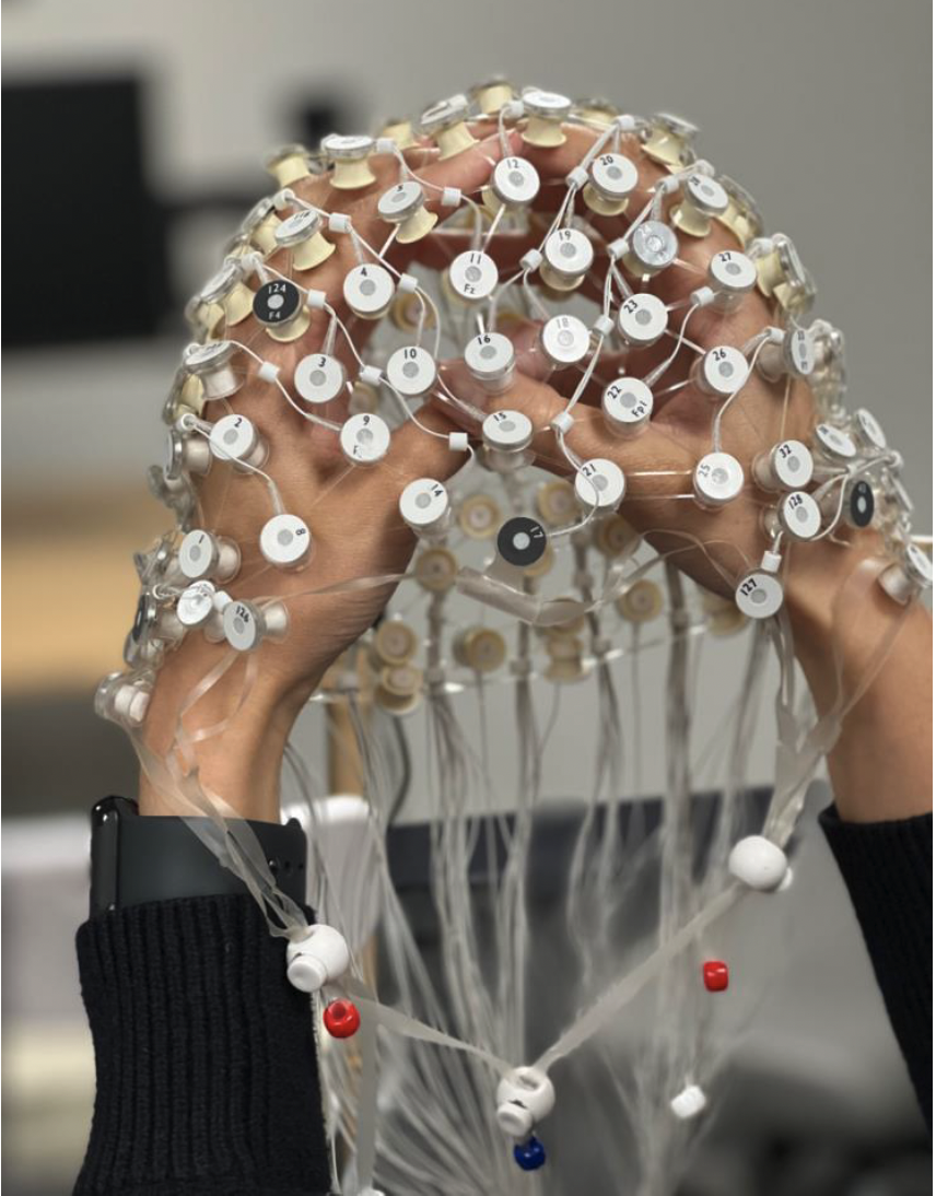 We record brain activity using electroencephalography, which is also known as EEG. EEG is a technology that is non-invasive and safe for children and adults.